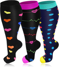Looking to reduce those swollen legs? We've got you covered with our plus size extra large compression socks in a variety of size options, ranging from 2XL to 4XL. These plus size compression socks cater to ankle sizes of up to 15 inches and calf circumferences between 18 to 28 inches. If you're unsure about your size, it's best to opt for the larger size for a perfect fit. The lightweight and breathable material used in these wide calf compression socks ensures a comfortable and pleasant experience even during extended wear. These compression socks provide recovery from restless leg syndrome, varicose veins, may reduce lymphoedema, boosts energy, improves blood flow. The wider calf and cuff design provides maximum comfort all day long.